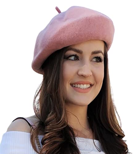 Generic - قبعة بيريه انيقة من الصوف، زهري، مقاس واحد