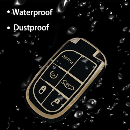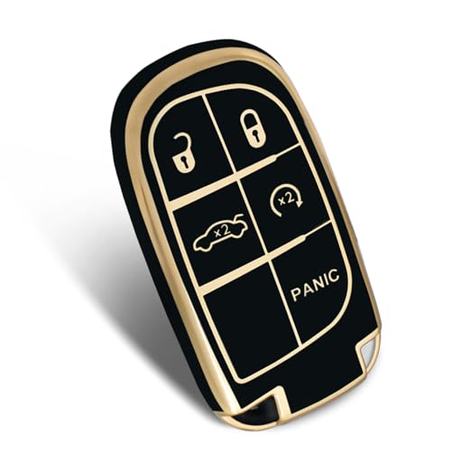 WORCAS - غطاء ريموت مفتاح سيارة ذكي من مادة البولي يوريثين المقاوم للحرارة الناعمة بنقش بلون ذهبي، حماية كاملة بزاوية 360 درجة و5/4/3/2 أزرار من وركاس (لون أسود)