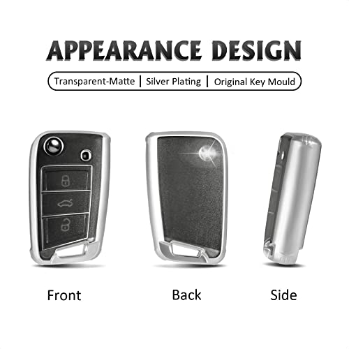 - 🚗جودة عالية🔑: جراب المفتاح مصنوع من البولي يوريثين المقاوم للحرارة الناعم عالي الجودة ومتين جدًا. يوفر حماية قصوى لمفتاح سيارتك، كما أن اللون الفضي لتصميم البولي يوريثين المقاوم للحرارة يغطي حواف جراب المفتاح، أما الجزء شبه الشفاف المطفي فلا يغطي جميع أزرار المفتاح الأصلي. يبدو اللون الزاهي لسطح جراب مفتاح السيارة مختلفًا، وهو أسهل في العثور عليه وأكثر مرونة وراحة في الاستخدام.