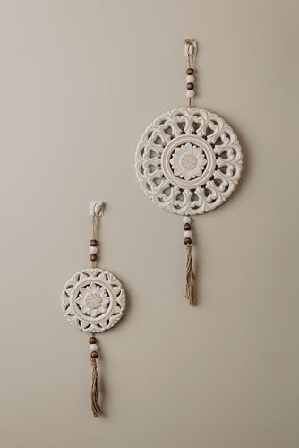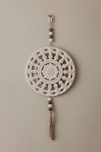 Generic - ووردز كو. زخرفة وردية خشبية مستديرة للتعليق على الحائط - ميدالية ديكور 20 سم - ديكور منزل بوهيمي كلاسيكي
