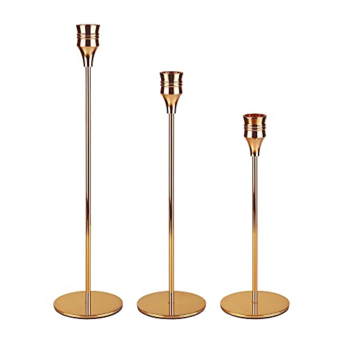 WORHE - مجموعة حوامل شموع معدنية لون ذهبي للشمع المشطوف للزفاف والطعام والحفلات واعياد الميلاد والذكرى السنوية من ورهي، حامل شموع سمك 3/4 بوصة او شموع LED (ZT008)