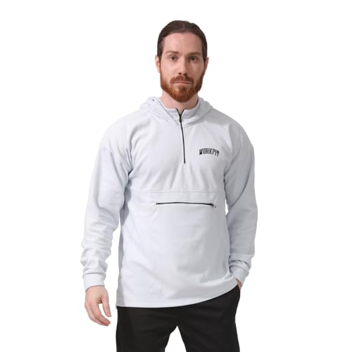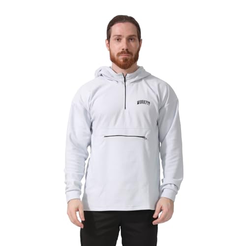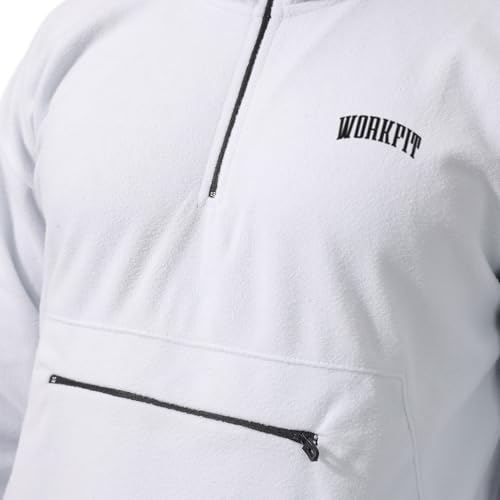 Work Fit - سويت شيرت قطن بغطاء للرأس وسوستة للجنسين من وورك فيت - ابيض (L)