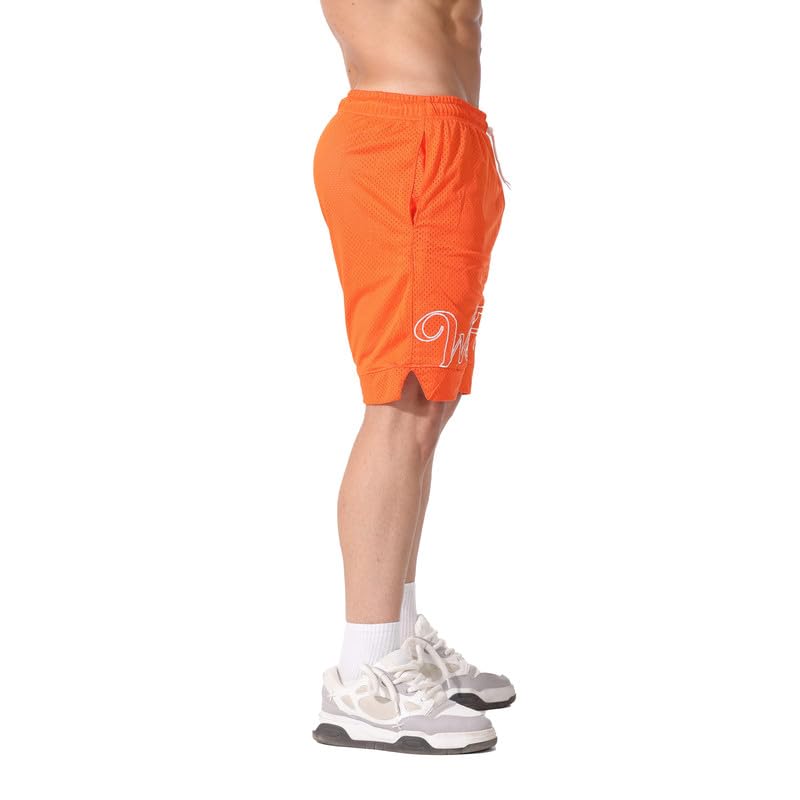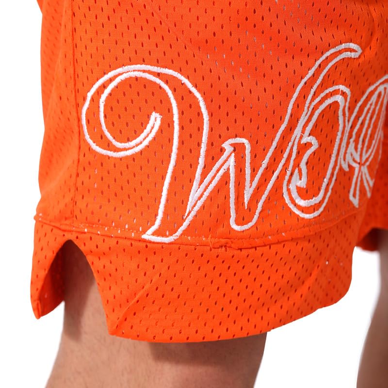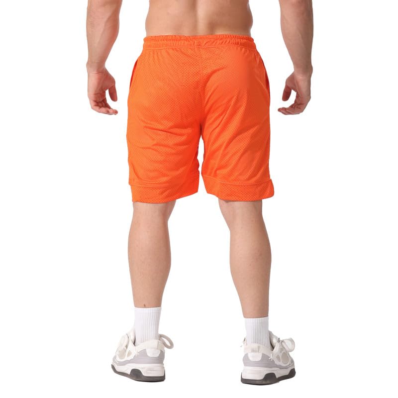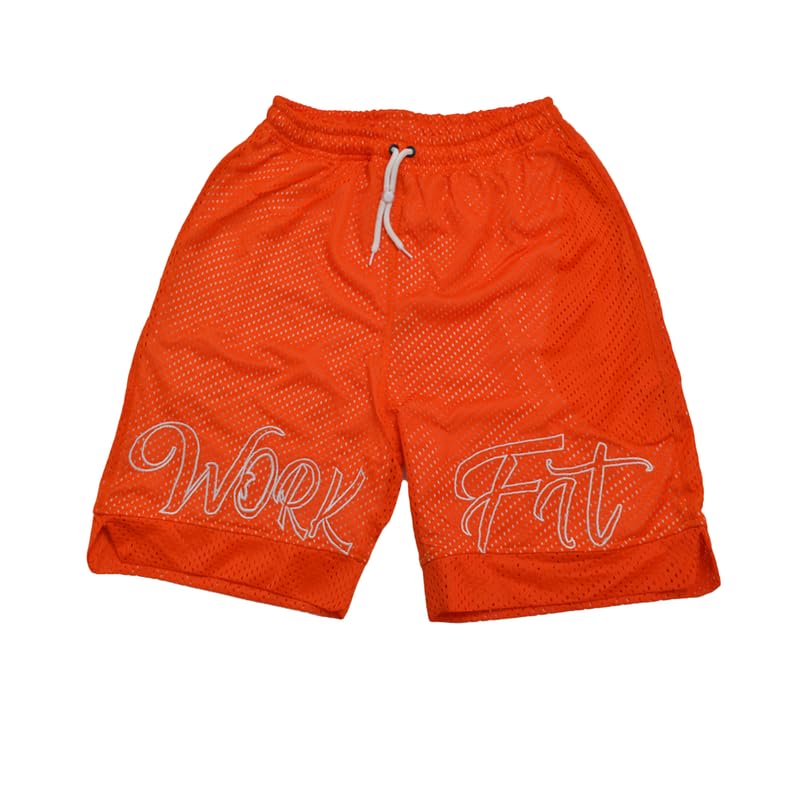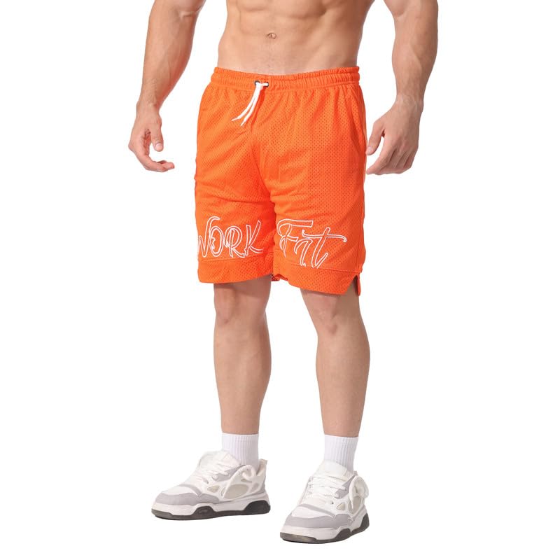 Work Fit - شورت رجالي مطرز لكرة السلة من البوليستر بجيوب جانبية وفتحات جانبية