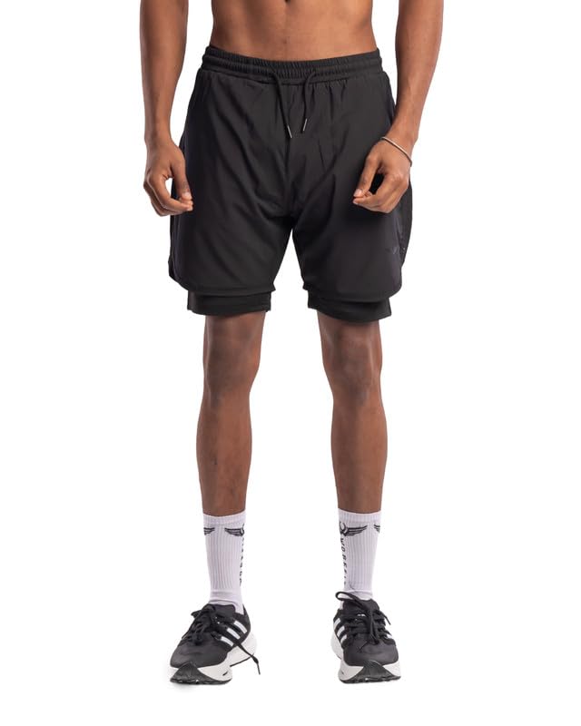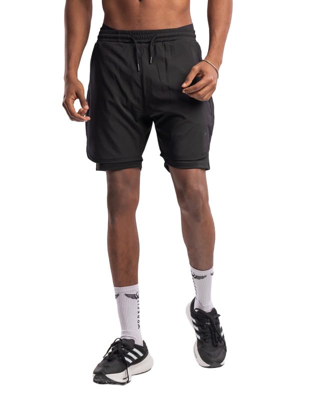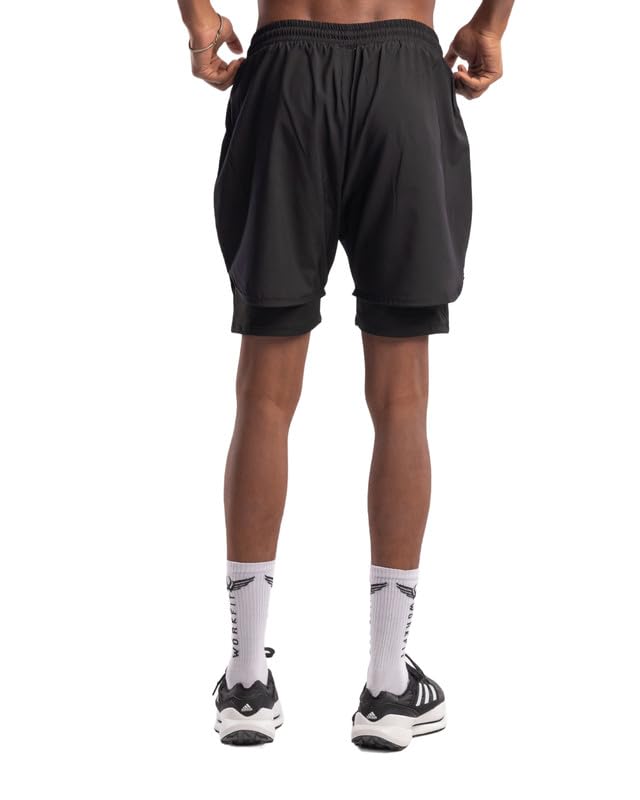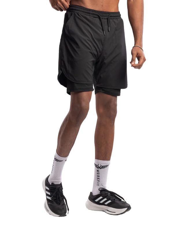 Work Fit - شورت تدريب رياضي 2 في 1 طراز 5090 WF مصنوع من قماش البوليستر مع شورت داخلي ضاغط للرجال من وورك فيت، لون أسود، مقاس اكس اكس لارج XXL