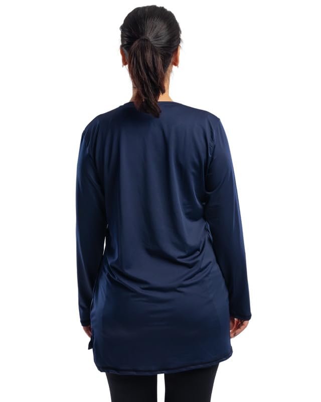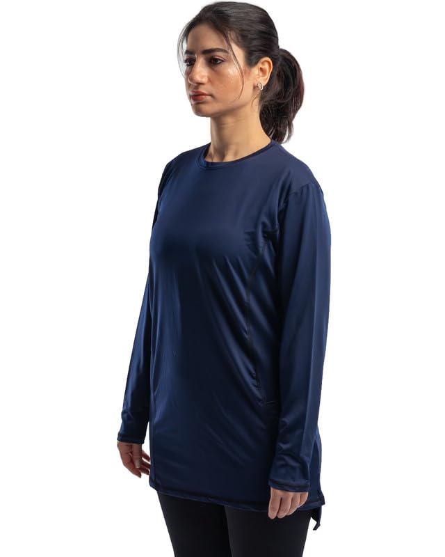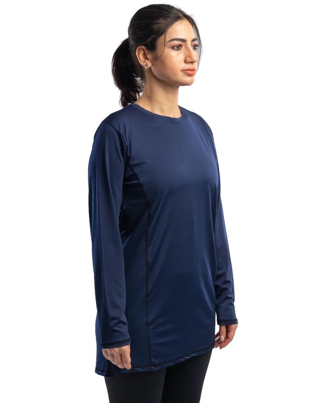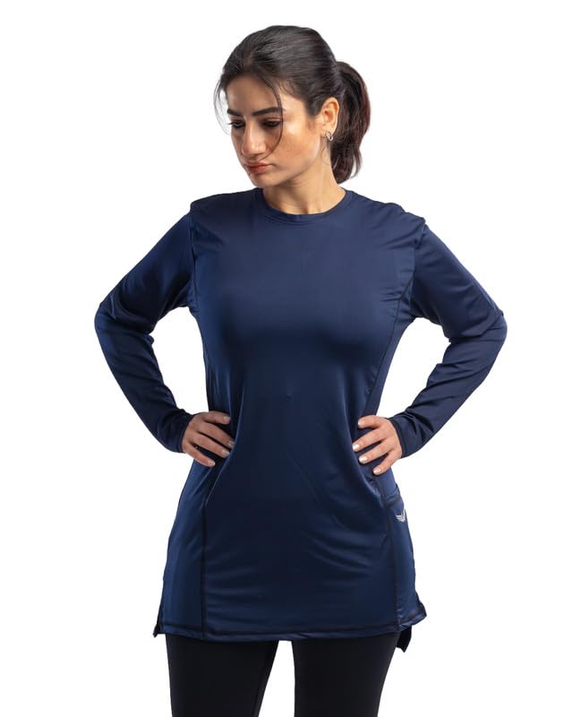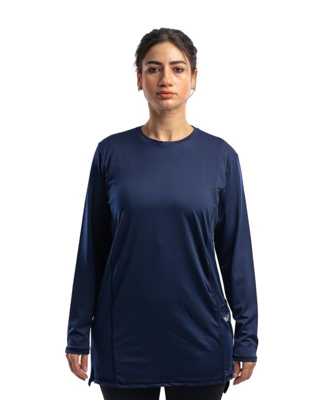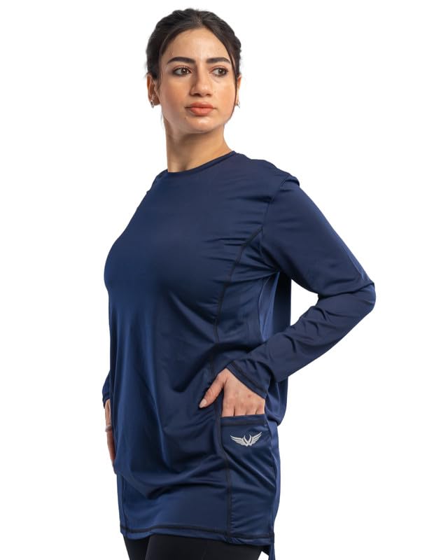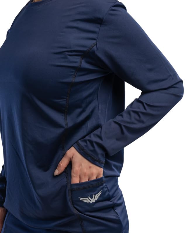 Work Fit - تيشيرت باكمام طويلة ورقبة دائرية ضيقة مع فتحات جانبية وجيب للنساء من وورك فيت