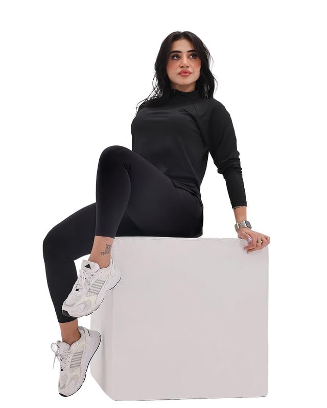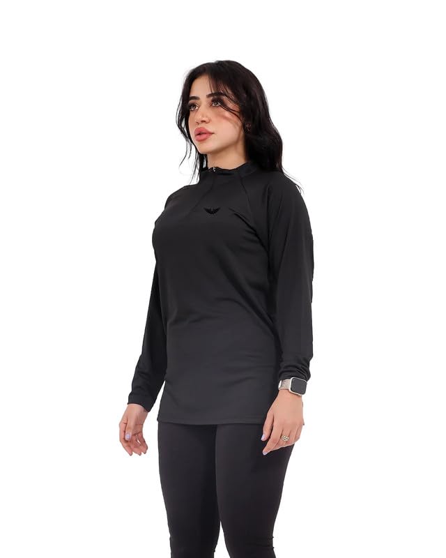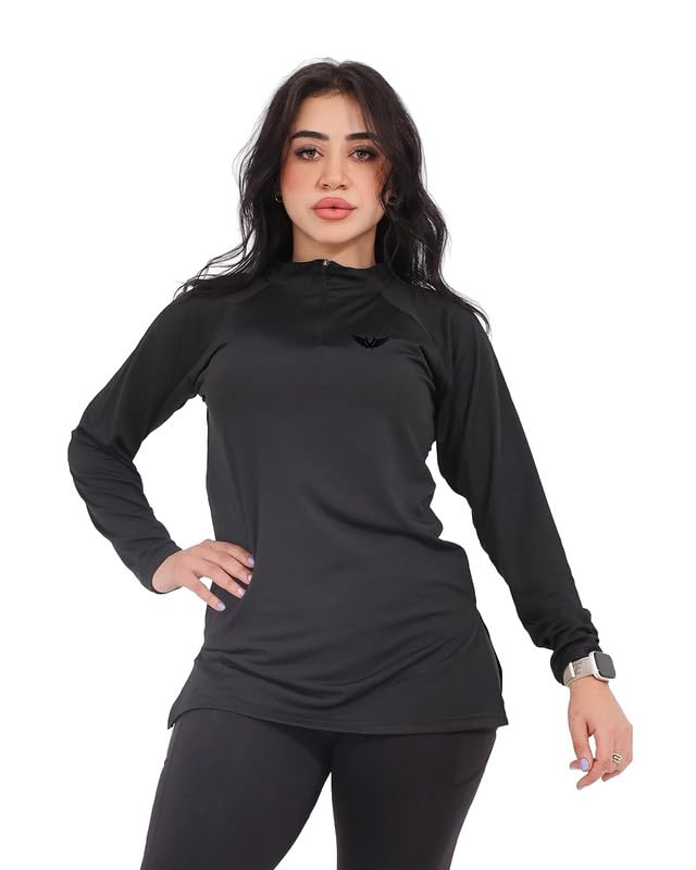 Work Fit - بلوزة برقبة عالية وسوستة وأكمام طويلة وقصة بفتحات جانبية للنساء من ورك فيت