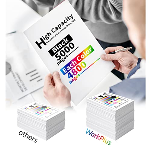 - 💎 إنتاجية عالية للصفحات: 5000 صفحة لكل خرطوشة حبر سوداء بتغطية 5% (حرف/ايه 4)/ 4800 صفحة لكل خراطيش حبر ملونة بتغطية 5% (حرف/ايه 4)
