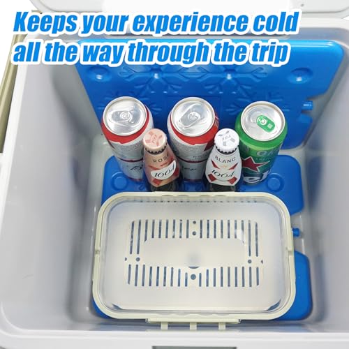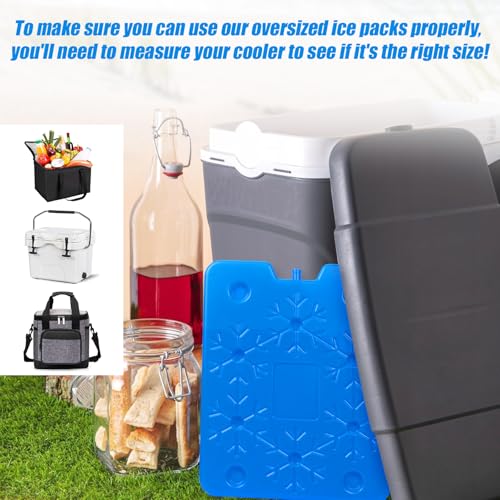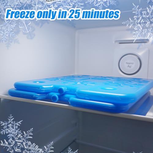 - جل يدوم طويلاً - يبلغ مقاس كل عبوة ثلج قابلة لإعادة الاستخدام 6.3 انش × 3.4 انش × 0.7 انش، وتزن 7 اونصة، تحافظ عبوة الثلج المملوءة بالجل على البرودة لفترة أطول بكثير من عبوات الثلج العادية المحقونة بالماء. تتجمد بسرعة وتبقى مجمدة لفترة طويلة، وتدوم حوالي 6 ساعات.