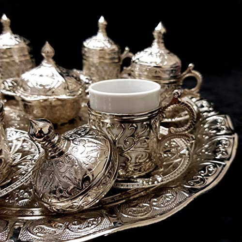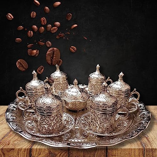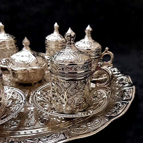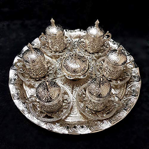 World Home Living - طقم اكواب شاي وقهوة من النحاس والفضة التركية بتصميم عثماني مكون 6 قطع - افضل بائع في المملكة المتحدة_مجموعة B وورلد هوم ليفينج فضي