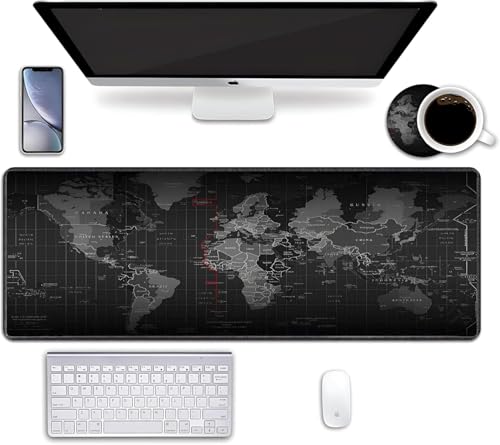 AREXOL - ماوس باد كبيرة بخريطة العالم مقاس 80 في 30 سم بسطح ناعم مقاوم للسوائل مع قاعدة مطاطية مانعة للانزلاق لتجربة استخدام ثابتة ومريحة للعمل والألعاب Office Pad