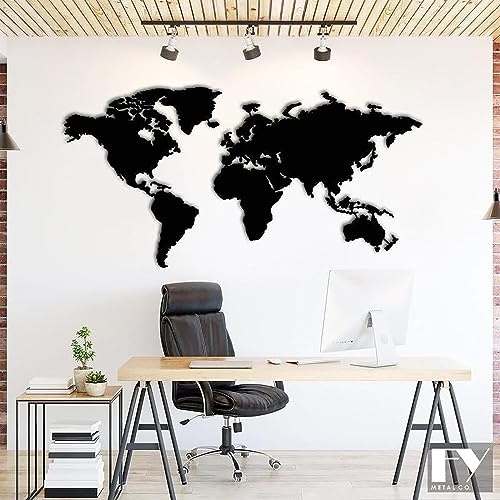Generic - لوحة فنية جدارية موديل WQ.WA227.19 بتصميم خريطة العالم مقاس 50×24 سم لون أسود