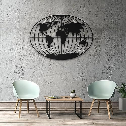 Generic - لوحة فنية جدارية بتصميم خريطة العالم مقاس 60 × 42 سم بلون اسود WQ.WA226.08
