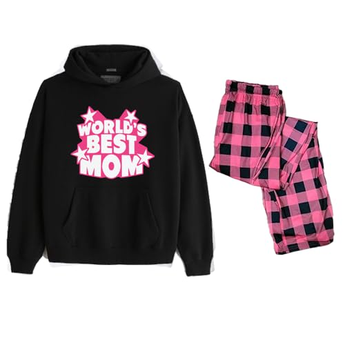 Generic - بيجامة بغطاء للرأس مطبوع عليه عبارة "World's Best Mom" مع بنطلون وردي، قطعتين، مقاس 2 اكس لارج (2XL)