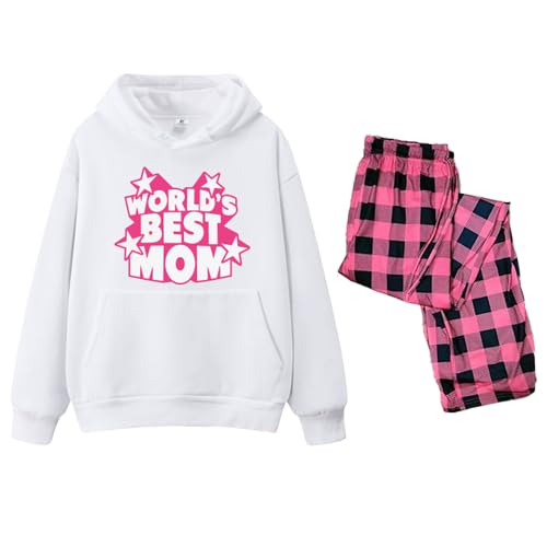 Generic - طقم بيجامة بعبارة World's Best Mom مع هودي ابيض مع بنطلون بينك، قطعتين مقاس (M)