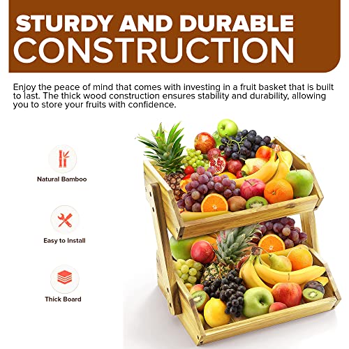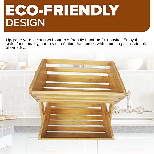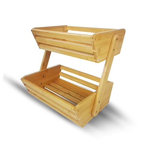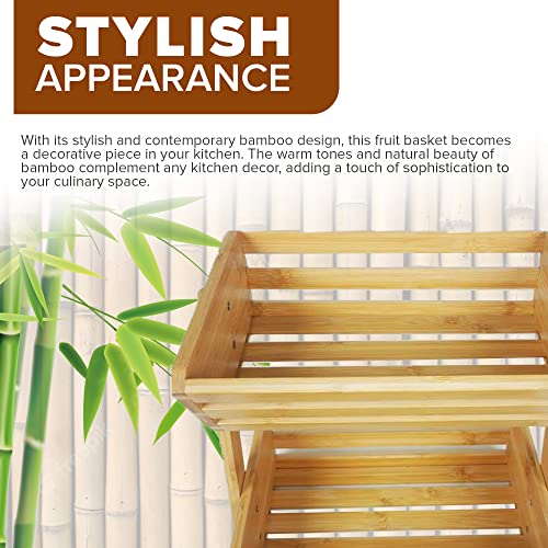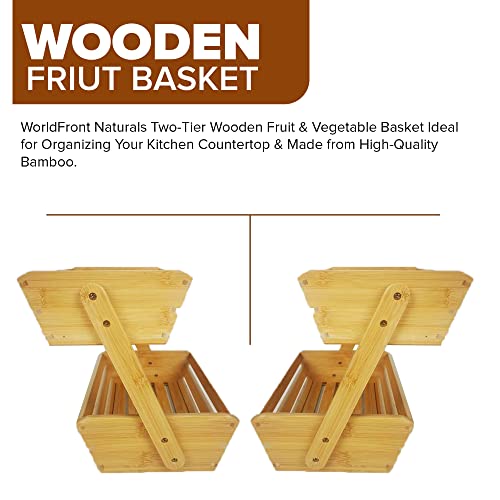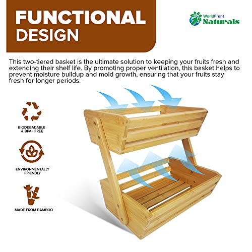 Worldfront - سلة فواكه وخضروات ناتشورالز الخشبية بطبقتين من وورلد فرونت لسطح طاولة المطبخ - مثالية لتنظيم مطبخك - تغليف صديق للبيئة مصنوع من خشب الخيزران (تجميع ذاتي)