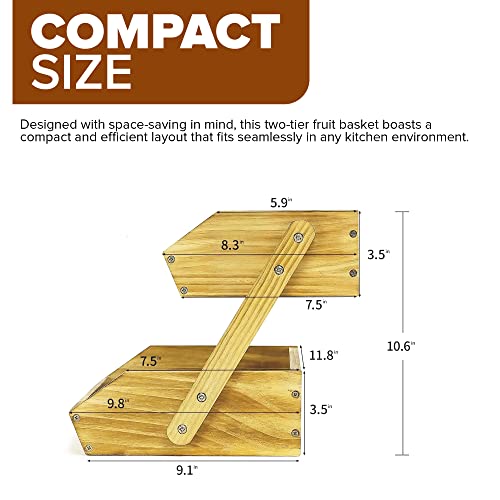 - تصميم عملي: توفر سلة الفاكهة الخشبية المكونة من طبقتين مساحة تخزين واسعة لجميع الفواكه الطازجة والخضروات والأدوات المنزلية الأخرى. تصميم مثالي للحفاظ على الفواكه والخضروات طازجة لفترة أطول.