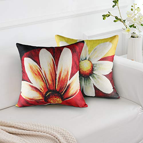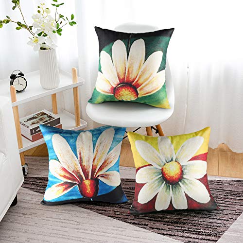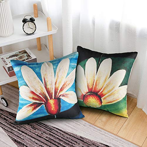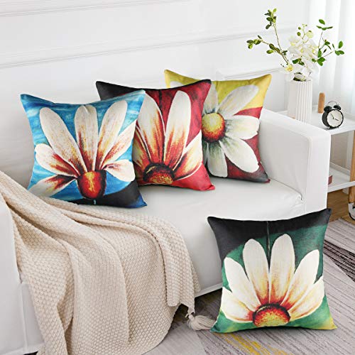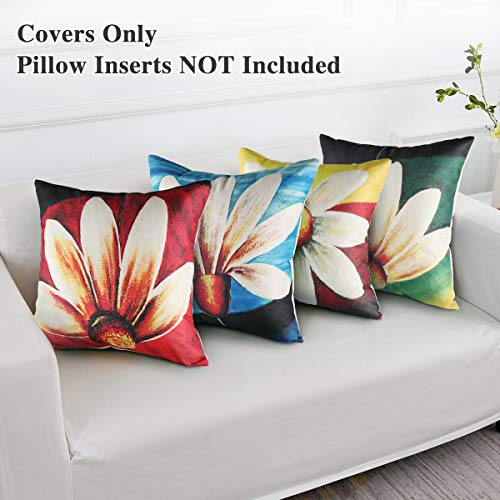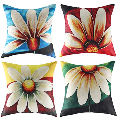 Wosendy - أغطية وسائد خارجية مزخرفة حزمة من 4 وسائد غطاء 45 × 45 وسائد للأريكة مزرعة أغطية وسائد كتان رمي أغطية وسائد لحديقة الهواء الطلق سرير أريكة (زهرة)