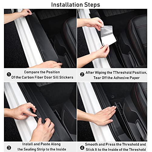 - سهل التركيب - واقي عتبة الباب المصنوع من ألياف الكربون السوداء المقاوم للخدش متين للغاية ومرن وقابل للانحناء (لن ينكسر أو ينكسر)، ويوجد شريط ثابت على الظهر، والذي يمكن تركيبه بسهولة عن طريق لصقه على عتبة الباب. تأتي كل لوحة حماية مع شريطين شريطين على الوجهين على الظهر، والتي يمكن تثبيتها جيدًا وتثبيتها بشكل دائم.