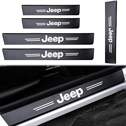 WoshocK - واقي لوحة عتبة باب السيارة من ألياف الكربون 5 قطع من WoshocK لـ Je-ep و واقي المصد الخلفي واقي عتبة لوحة الحماية لصندوق السيارة ملصق حماية من ألياف الكربون وغشاء فينيل عاكس