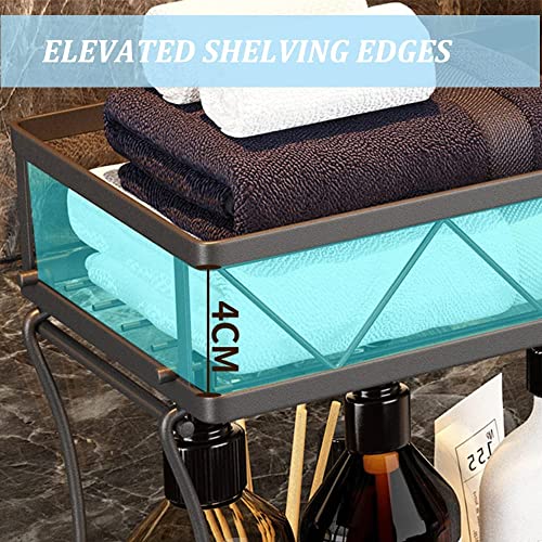 Wotendy - رف تخزين للحمام من طبقتين فوق المرحاض، منظم حمام مع بكرة ورق وخطاف تعليق وقاعدة لاصقة، رف حمام بدون ثقوب، شفاف