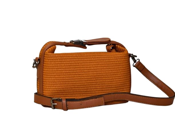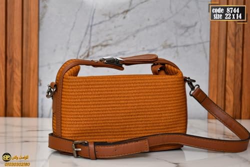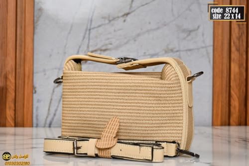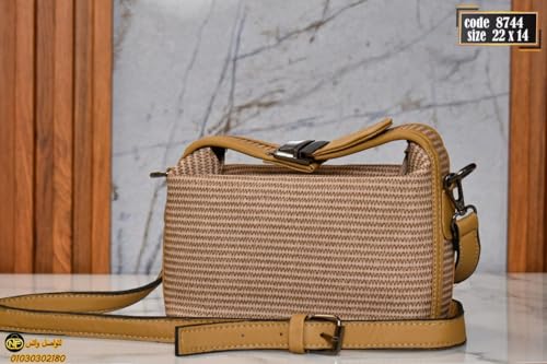 Generic - شنطة يد طويلة تمر بالجسم منسوجة مع حزام قابل للتعديل، متوفرة باللون الزهري والبني والزيتوني وتصميم مزخرف