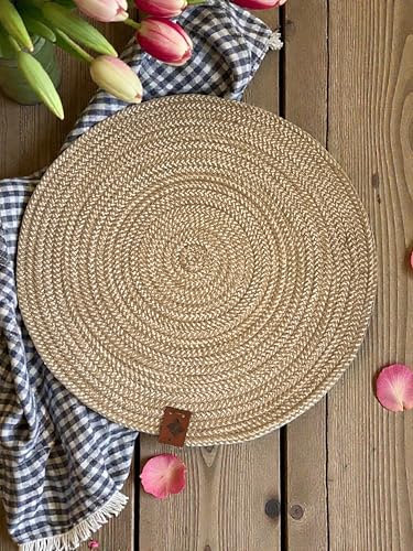 Woven it - مفرش أطباق قطن، يمكن استخدامه في المطبخ وغرفة الطعام وغرفة المعيشة وغرفة النوم وغرفة الأطفال والأماكن الداخلية والخارجية من ووفن ات، لون اوف وايت × بيج، مقاس 35 سم