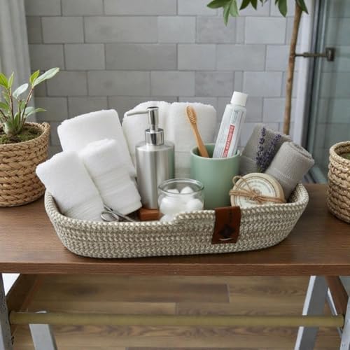 - منظم متعدد الاستخدامات: هذا المنظم القطني المصنوع يدويًا مصنوع من القطن الرمادي المتين، وهو مثالي لتخزين أدوات النظافة أو المكياج أو الضروريات الصغيرة.