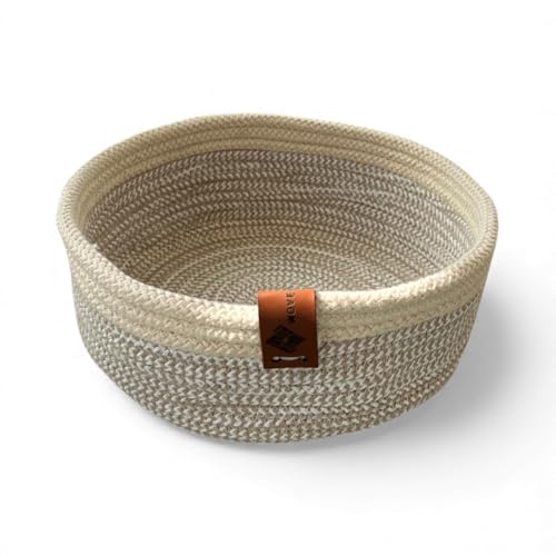 Woven it - سلة دائرية من القطن بلون بيج واوف وايت، مقاس 22 سم × 8 سم، سلة تخزين ومنظم. يمكن استخدامها في المطبخ وغرفة الطعام وغرفة المعيشة وغرفة النوم وغرفة الاطفال والحمام والاماكن الداخلية والخارجية.