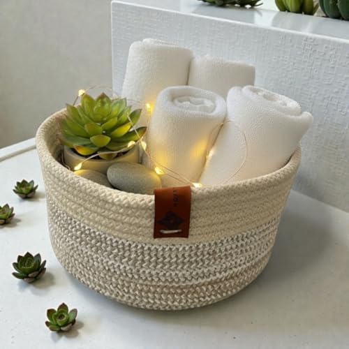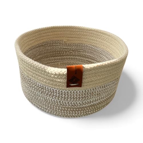 Woven it - سلة دائرية من القطن بلون بيج واوف وايت، مقاس 20 سم × 10 سم، يمكن استخدامها في المطبخ وغرفة الطعام وغرفة المعيشة وغرفة النوم وغرفة الاطفال والحمام والاماكن الداخلية والخارجية.