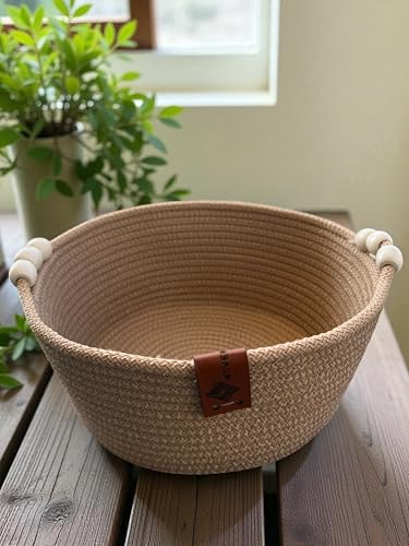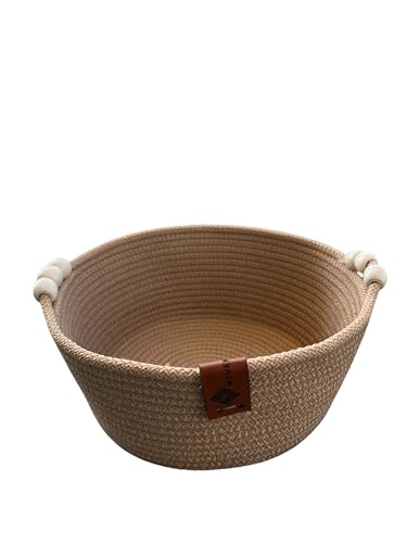 Woven it - طبق دائري مصنوع يدويا من القطن بلون بيج مع اكسسوارات خشبية 20 سم × 10 سم، يمكن استخدامه في المطبخ وغرفة الطعام وغرفة المعيشة وغرفة النوم وغرفة الاطفال والحمام والاماكن الداخلية والخارجية.