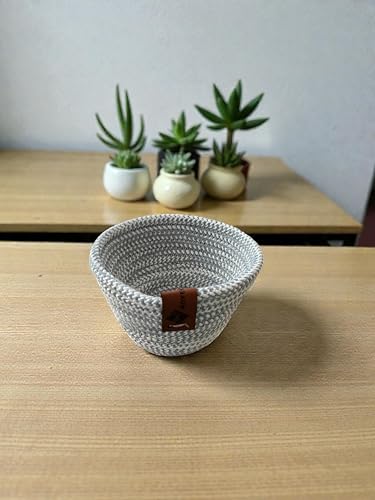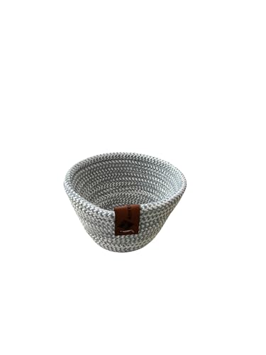 Woven it - سلة صغيرة دائرية من القطن بلون رمادي واوف وايت، مقاس 14 سم × 7 سم، سلة تخزين ومنظم. يمكن استخدامها في المطبخ وغرفة الطعام وغرفة المعيشة وغرفة النوم وغرفة الاطفال والحمام والاماكن الداخلية والخارجية.