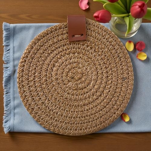 Woven it - قاعدة اكواب مصنوعة يدويا من القطن بلون جملي مقاس 13 سم، يمكن استخدامها في المطبخ وغرفة الطعام وغرفة المعيشة وغرفة النوم وغرفة الاطفال والاماكن الداخلية والخارجية