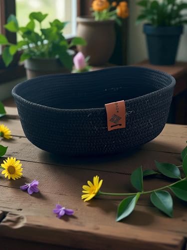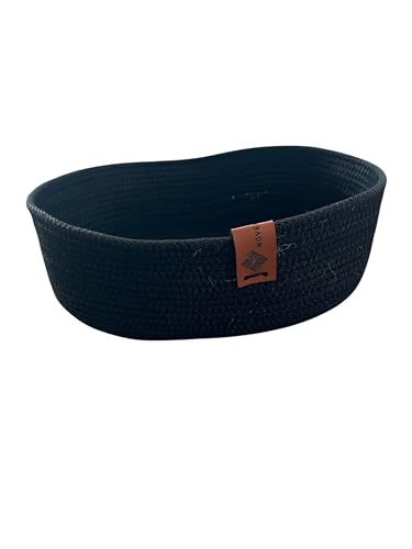 Woven it - طبق اسود بيضاوي مصنوع يدويا من القطن مقاس 24 سم × 17 سم × 8 سم، سلة تخزين ومنظم. يمكن استخدامه في المطبخ وغرفة الطعام وغرفة المعيشة وغرفة النوم وغرفة الاطفال والحمام والاماكن الداخلية والخارجية.