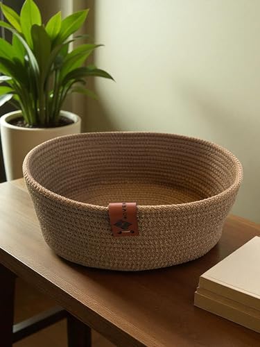 Woven it - طبق بيضاوي مصنوع يدويا من القطن بلون جملي مقاس 24 سم × 17 سم × 8 سم، يمكن استخدامه في المطبخ وغرفة الطعام وغرفة المعيشة وغرفة النوم وغرفة الاطفال والحمام والاماكن الداخلية والخارجية.