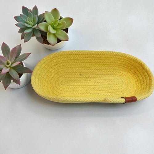 Woven it - صينية تنظيم بيضاوية من القطن منسوجة يدويًا يمكن استخدامها في المطبخ والحمام وغرفة النوم وغرفة الأطفال وغرفة المعيشة وغرفة الطعام وداخل وخارج المنزل، أصفر، 26 × 15 × 4 سم