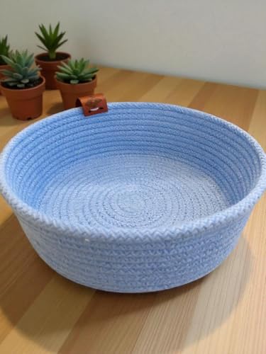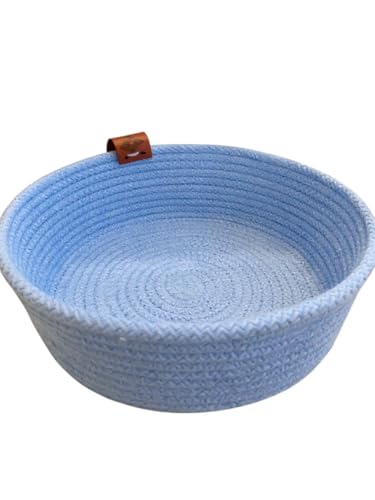 Woven it - سلة صغيرة دائرية مصنوعة يدويا من القطن بلون ازرق فاتح مقاس 22 سم × 8 سم، يمكن استخدامها في المطبخ والمرحاض وغرفة النوم وغرفة الاطفال وغرفة المعيشة وغرفة الطعام من الداخل والخارج.