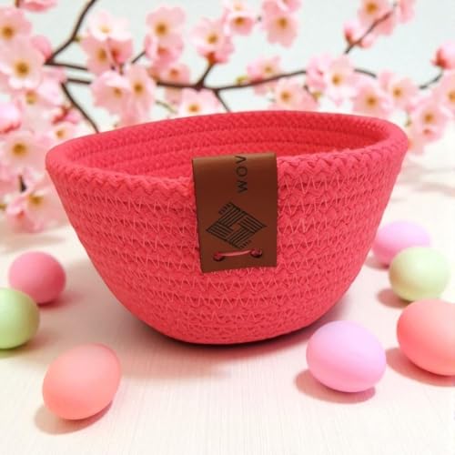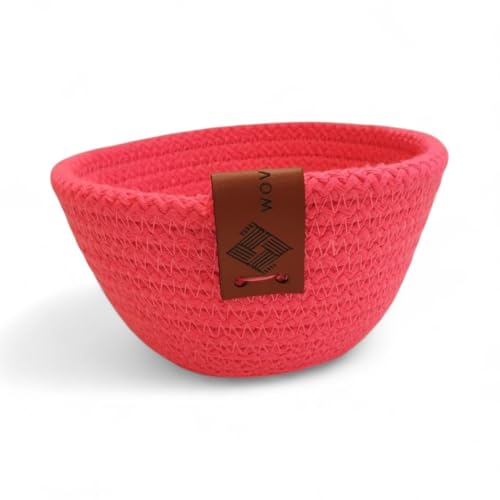 Woven it - وعاء صغير دائري مصنوع يدويا من القطن فوشيا مقاس 14 سم × 7 سم، يمكن استخدامه في المطبخ والمرحاض وغرفة النوم وغرفة الاطفال وغرفة المعيشة وغرفة الطعام من الداخل والخارج.