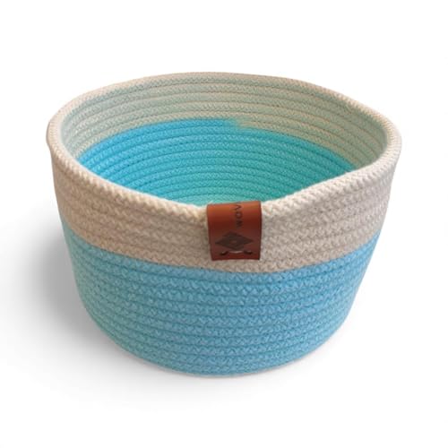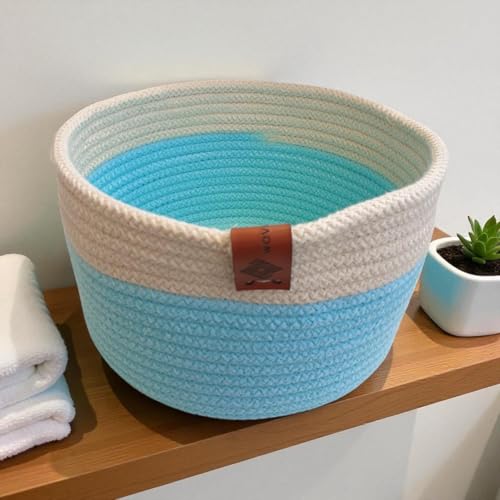 Woven it - سلة دائرية مصنوعة يدويًا من نسيج محبوك من القطن للاستخدام في المطبخ والحمام وغرفة النوم وغرفة الأطفال وغرفة المعيشة وغرفة الطعام والأماكن الداخلية والخارجية، لون أخضر مينت وأبيض، مقاس 20 سم × 10 سم