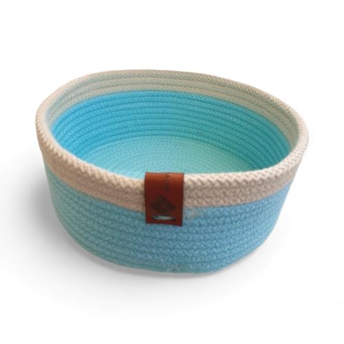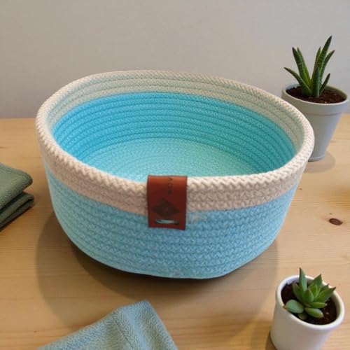 Woven it - سلة دائرية مصنوعة يدويا من القطن بلون اخضر مينت وابيض مقاس 22 سم × 8 سم، يمكن استخدامها في المطبخ والمرحاض وغرفة النوم وغرفة الاطفال وغرفة المعيشة وغرفة الطعام من الداخل والخارج.