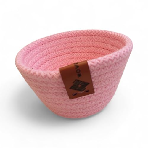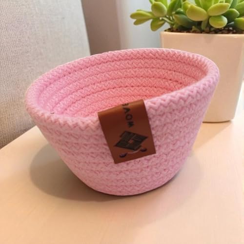 Woven it - وعاء صغير دائري مصنوع يدويا من القطن بلون بينك مقاس 14 سم × 7 سم، يمكن استخدامه في المطبخ والمرحاض وغرفة النوم وغرفة الاطفال وغرفة المعيشة وغرفة الطعام من الداخل والخارج.