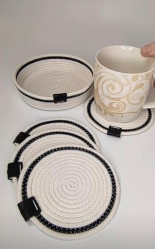 Generic - مجموعة قواعد أكواب منسوجة يدوية الصنع مع بولة منسوجة بمقاس 17 × 4 سم يمكن استخدامها في المطبخ وغرفة المعيشة وغرفة الطعام والأماكن الداخلية والخارجية، مقاس 13 سم، مجموعة من 4 قطع