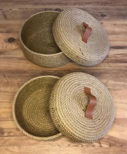 Woven it - سلة تخزين منسوجة يدويًا من قماش الجوت مع غطاء لتنظيم المنزل، يمكن استخدامها في المطبخ والمرحاض وغرفة النوم وغرفة الأطفال وغرفة المعيشة وغرفة الطعام في الداخل والخارج، (أبعاد 8 × 20 × 8 سم)