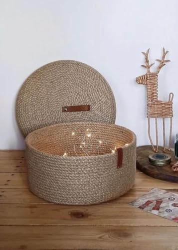 Woven it - سلة منسوجة من الجوت بغطاء لتنظيم المنزل (12 × 25 × 12 سم) يمكن استخدامها في المطبخ والمرحاض وغرفة المعيشة وغرفة الطعام وغرفة النوم وغرفة الأطفال والأماكن الداخلية والخارجية