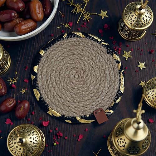 Woven it - قاعدة اكواب رمضان من قماش الجوت × اسود مقاس 13 سم، يمكن استخدامها في المطبخ وغرفة الطعام وغرفة المعيشة وغرفة النوم والاماكن الداخلية والخارجية.