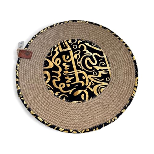 Woven it - مفرش طاولة بتصميم رمضان من قماش الجوت × اسود مقاس 35 سم، يمكن استخدامه في المطبخ وغرفة الطعام وغرفة المعيشة وغرفة النوم والاماكن الداخلية والخارجية.