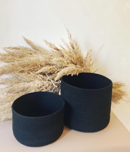 Generic - سلال قطنية منسوجة، مجموعة من قطعتين، أسود مقاس 20 سم× 9 سم و20 سم × 12 سم