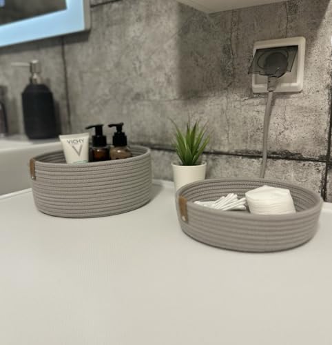 Generic - طبق وسلة قطنية بنسيج محبوك، رمادي، مجموعة من قطعتين، 20 سم × 5 سم و20 سم × 10 سم
