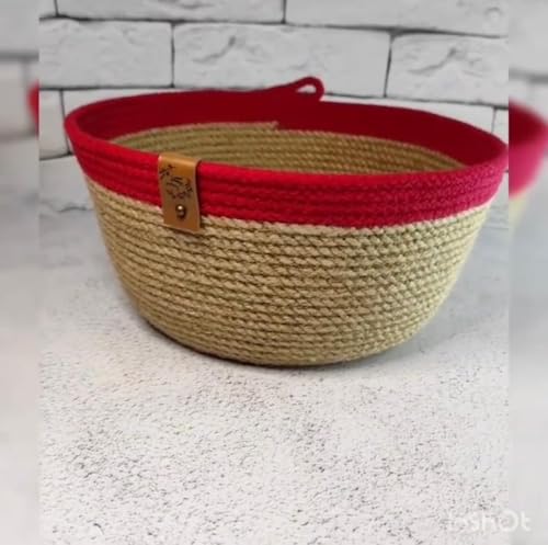 Generic - سلة خيش منسوجة من الجوت بحافة حمراء يمكن استخدامها في المطبخ والتواليت وغرفة المعيشة وغرفة الطعام وغرفة الأطفال وغرفة النوم والداخل والخارج من ووفن ات، 20 سم × 10 سم