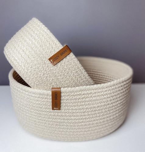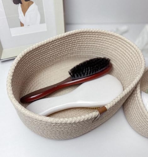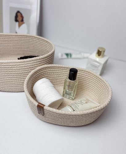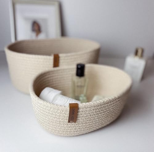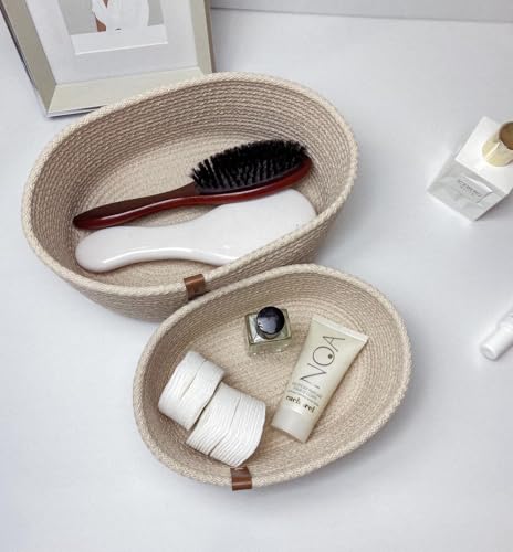 Generic - اطباق قطنية بيضاوية منسوجة بلون اوف وايت، مجموعة من قطعتين، 17×12×6 سم و22×12×6 سم