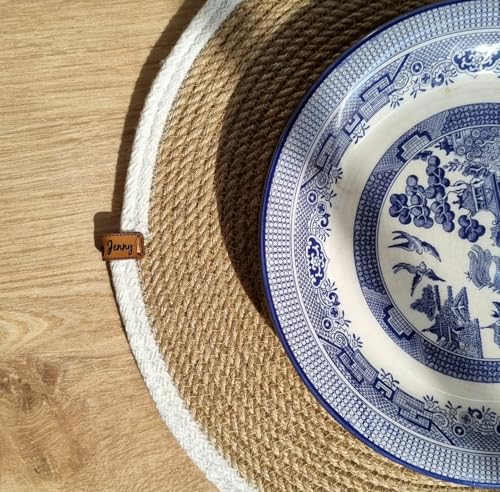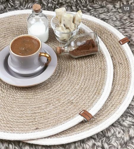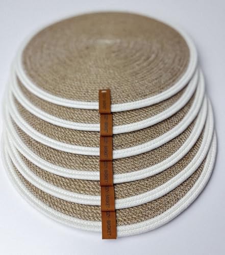Generic - مفرش أطباق منسوج من الجوت، مقاس 35 سم، قطعة واحدة، لون بيج وأبيض